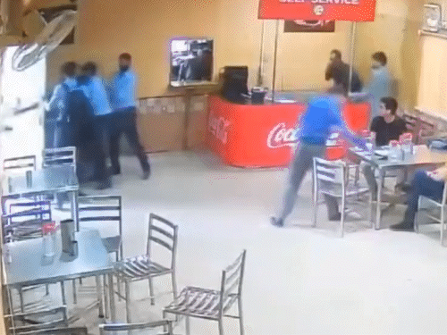 पुलिस ने कैफेटेरिया में घुसकर पत्रकारों को पीटा।
