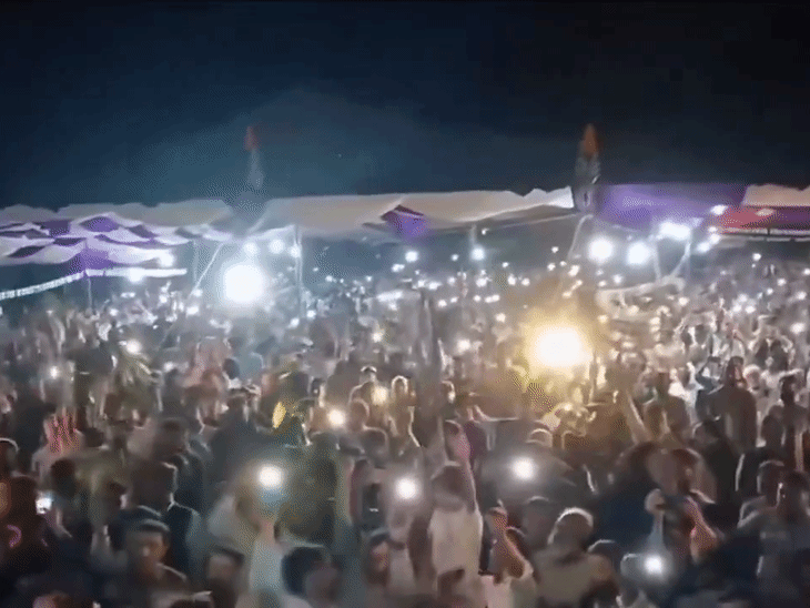 हॉस्पिटल के बाहर जमा आंदोलनकारियों की भीड़।