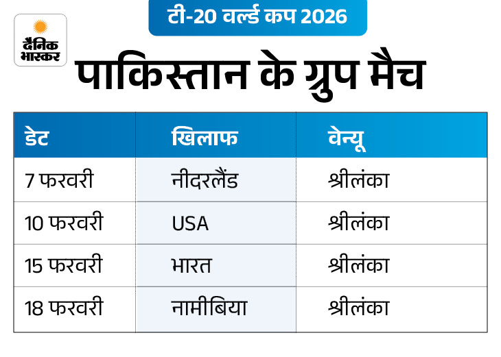 सलमान अली आगा को कप्तान बनाया गया है। जबकि बाबर आजम, फखर जमान और शाहीन शाह अफरीदी जैसे सीनियर्स को भी चुना गया है। पाकिस्तानी टीम पहला मैच 7 फरवरी को कोलंबो में नीदरलैंड्स के खिलाफ खेलेगी।