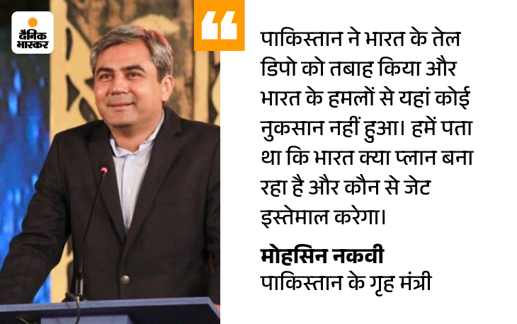 नकवी ने कहा कि पाकिस्तान ने भारत के एक तेल डिपो को तबाह कर दिया। हालांकि, पाकिस्तान ने अभी तक कोई वीडियो या ठोस सबूत सार्वजनिक नहीं किया है।