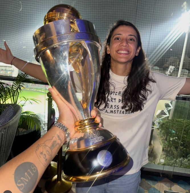 बता दें कि स्मृति ने हाल ही में भारत के लिए ICC वीमेन वनडे वर्ल्ड कप जीता है। ये भारतीय वीमेन क्रिकेट टीम का पहला वर्ल्ड कप टाइटल है। वर्ल्ड कप जीतने के बाद पलाश गर्लफ्रेंड स्मृति के सेलिब्रेशन का हिस्सा बने। इस दौरान उनके हाथ पर स्मृति के नाम और उनकी जर्सी नंबर का टैटू भी देखा गया था।