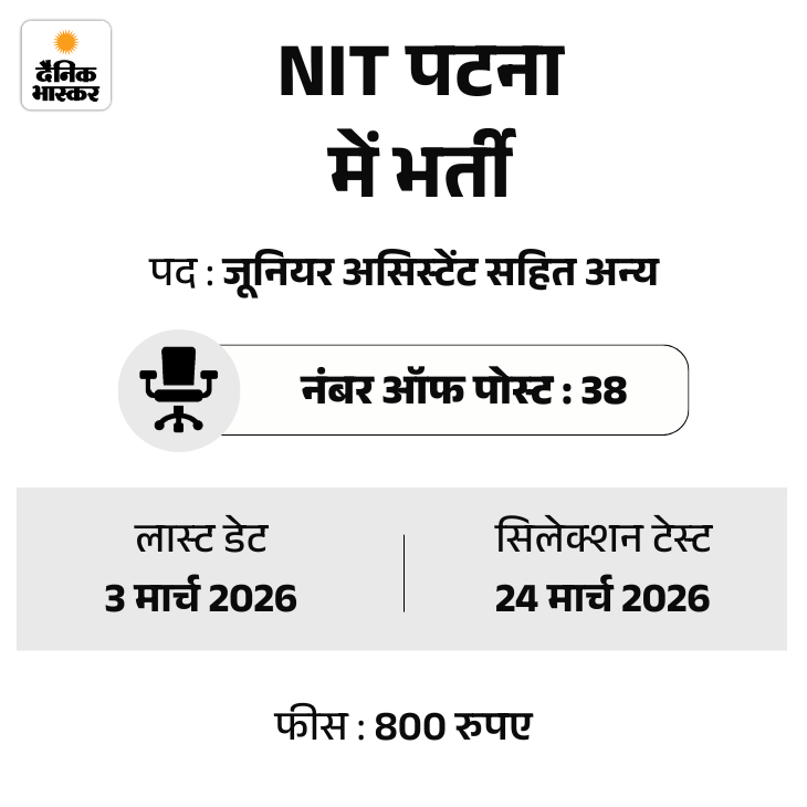 नेशनल इंस्टीट्यूट ऑफ टेक्नोलॉजी (NIT), पटना ने असिस्टेंट रजिस्ट्रार, असिस्टेंट लाइब्रेरियन, टेक्नीशियन, टेक्निकल असिस्टेंट सहित 38 पदों पर वैकेंसी निकाली है। उम्मीदवार ऑफिशियल वेबसाइट mis.nitp.ac.in पर जाकर अप्लाई कर सकते हैं। इसके अलावा ऑफलाइन भी आवेदन करना होगा।