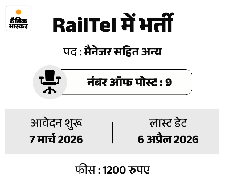 1. RailTel में मैनेजर के पदों पर निकली भर्ती