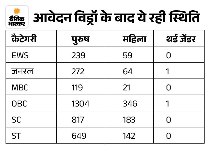 - EWS, जनरल और MBC में कोई वैकेंसी ही नहीं थी। इसके बावजूद कैंडिडेट्स ने आवेदन किए।