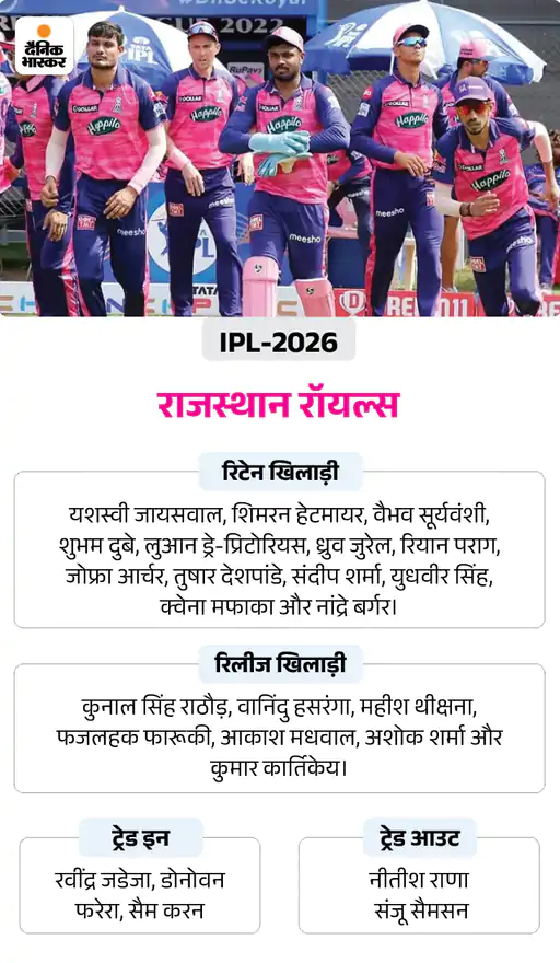द्रविड़ के हटने के बाद संगकारा को दोबारा जिम्मेदारी राहुल द्रविड़ इस साल अगस्त में टीम से अलग हो गए थे। वे 2025 सीजन के लिए टीम के हेड कोच बनाए गए थे। लेकिन टीम के खराब प्रदर्शन के बाद की गई रिव्यू के बाद उन्होंने पद छोड़ दिया था। टीम पिछले सीजन में बेहद खराब फॉर्म में रही और 10 टीमों में 9वें स्थान पर रही। 14 में से केवल 4 मैच जीते थे।