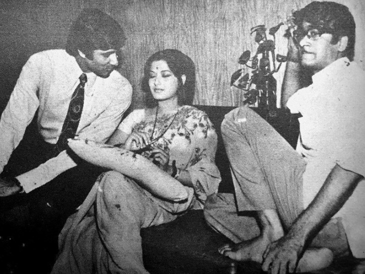 फिल्म बेनाम की शूटिंग के दौरान ली गई अमिताभ बच्चन, मौसमी चटर्जी के साथ नरेंद्र बेदी की तस्वीर।