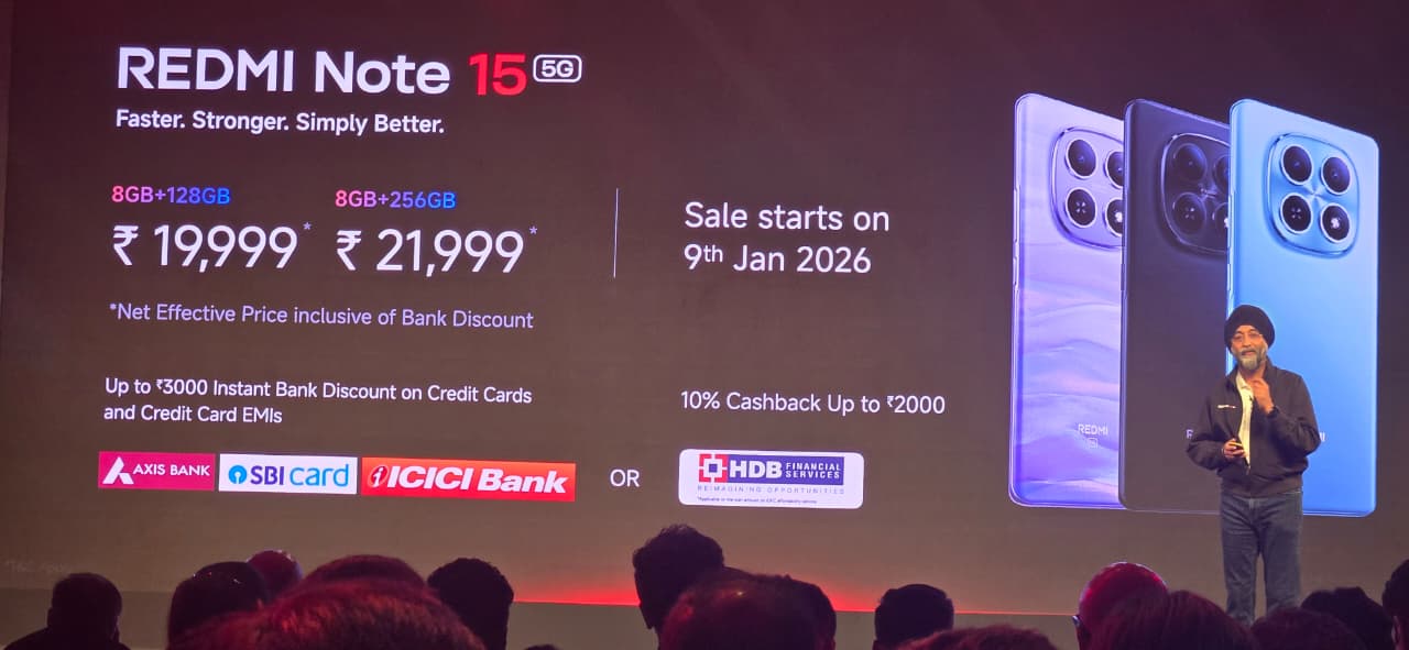 टेक कंपनी शाओमी की सब ब्रांड रेडमी इंडिया ने आज (6 जनवरी) भारत में लोवर मिड बजट सेगमेंट में नया स्मार्टफोन रेडमी नोट 15 लॉन्च कर दिया है। नया 5G स्मार्टफोन 108 मेगापिक्सल कैमरा और 5520mAh बैटरी के साथ पेश किया गया है।