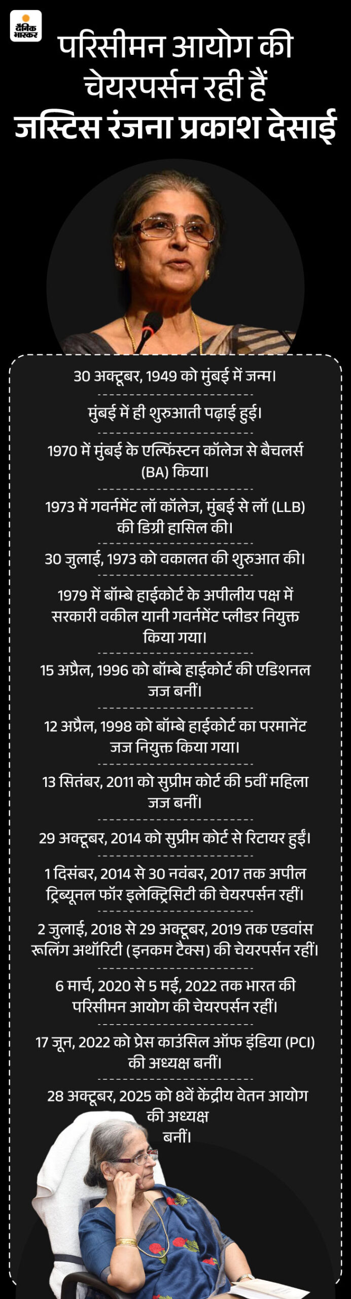 Retired Justice Ranjana Prakash Desai is the chairperson of the 8th Pay Commission. | रिटायर्ड जस्टिस रंजना प्रकाश देसाई 8वें वेतन आयोग की अध्यक्ष: सुप्रीम कोर्ट की 5वीं महिला जज बनीं, परिसीमन आयोग की चेयरपर्सन रहीं, जानें कंप्लीट प्रोफाइल