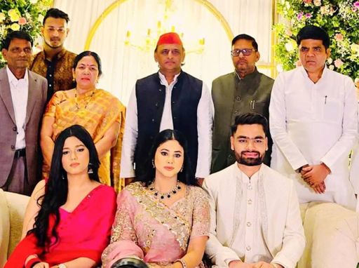 यह तस्वीर 6 अगस्त 2025 की है। इस दिन रिंकू सिंह और प्रिया सरोज की सगाई हुई थी। रिंकू के माता-पिता के साथ सपा चीफ अखिलेश यादव भी मौजूद थे।