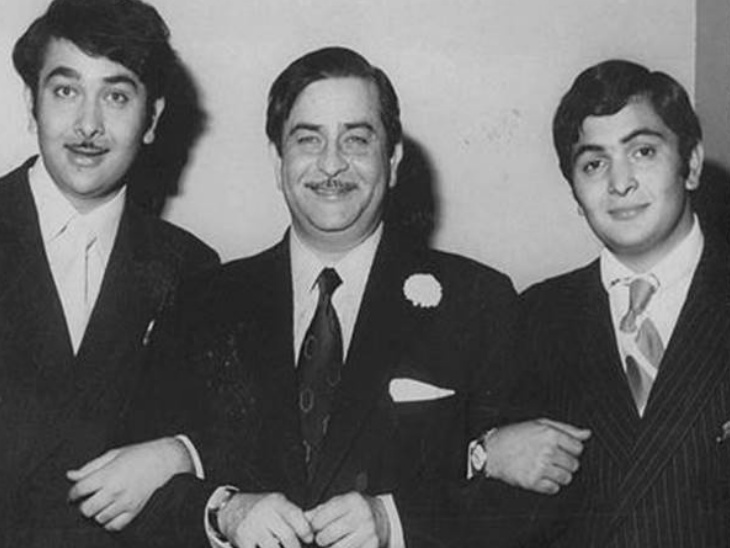 बड़े भाई रणधीर कपूर और पिता राज कपूर के साथ ऋषि कपूर।