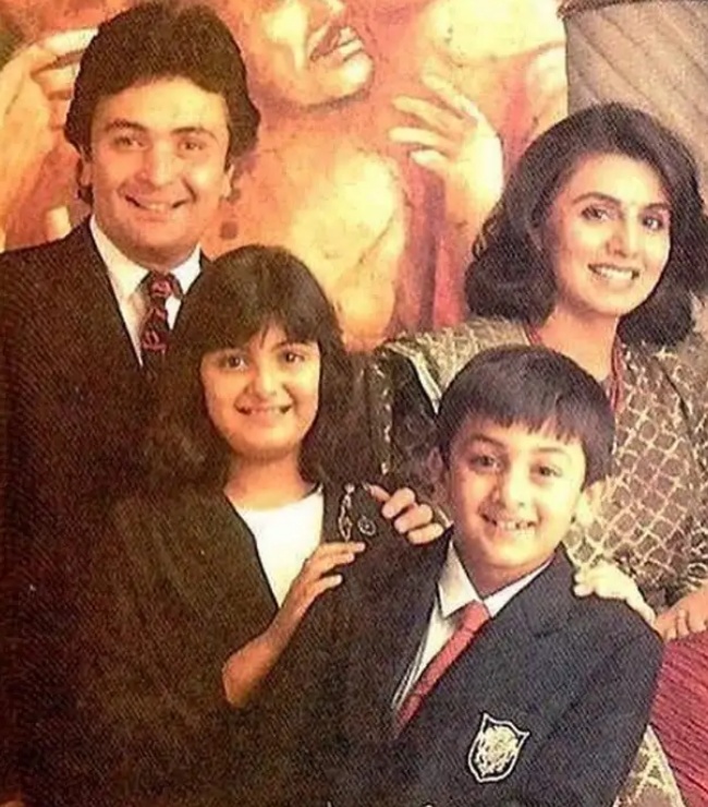 ऋषि कपूर और नीतू के साथ रिद्धिमा, रणबीर के बचपन की तस्वीर।