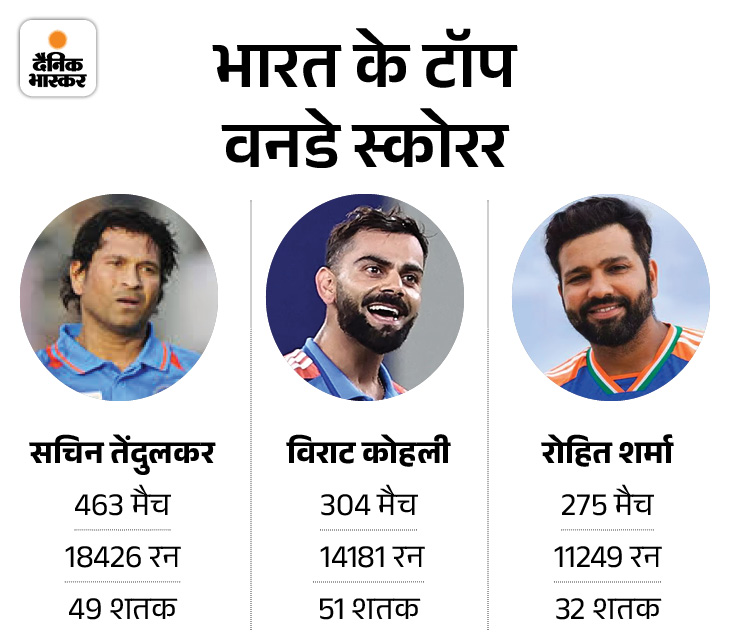 2. भारत के तीसरे टॉप स्कोरर बने रोहित रोहित शर्मा 97 गेंद पर 73 रन बनाकर आउट हुए। उन्हें मिचेल स्टार्क ने फाइन लेग पोजिशन पर जोश हेजलवुड के हाथों कैच कराया। 73 रन की पारी के साथ रोहित भारत के लिए वनडे में तीसरे सबसे ज्यादा रन बनाने वाले प्लेयर बन गए। रोहित ने गांगुली को पीछे छोड़ा, जिन्होंने 308 मुकाबलों में 11,221 रन बनाए थे। रोहित के नाम 11,249 रन हो गए हैं। सचिन तेंदुलकर पहले और विराट कोहली दूसरे नंबर पर हैं।