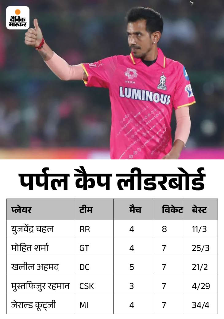 दिल्ली की ओर से एक विकेट लेकर खलील अहमद पर्पल कैप की रेस में तीसरे नंबर पर आ गए हैं, जबकि मुंबई की ओर से 4 विकेट चटकाने वाले जेराल्ड कूट्जी टॉप-5 में शामिल हो गए हैं।