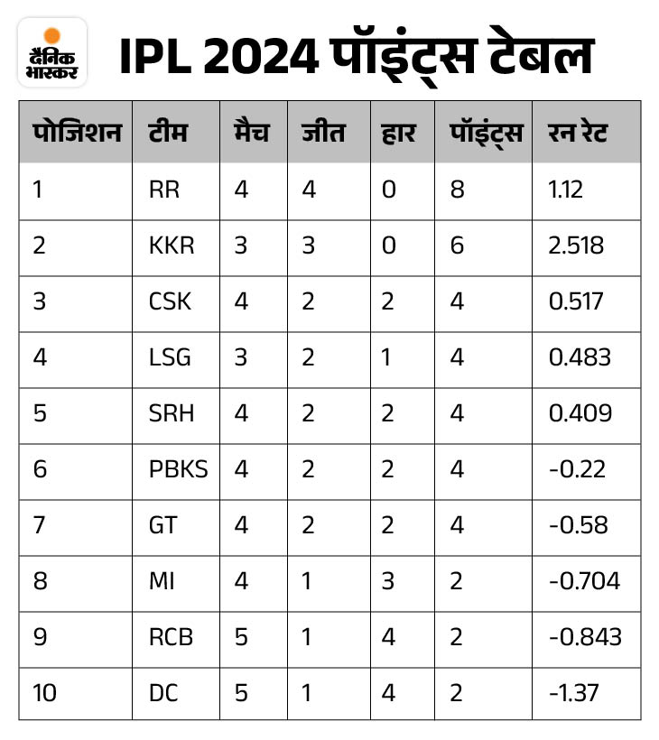 पॉइंट्स टेबल: मुंबई 8वें नंबर पर आई, दिल्ली निचले पायदान पर
