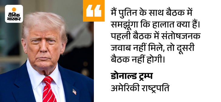 यूरोपीय नेताओं के साथ बैठक के बाद ट्रम्प ने प्रेस कॉन्फ्रेंस की। जिसमें ट्रम्प से पूछा गया कि क्या वे पुतिन को यूक्रेन में नागरिकों पर हमले रोकने के लिए मना सकते हैं, तो उन्होंने कहा-शायद नहीं, क्योंकि मैंने पहले भी यह बात की है।