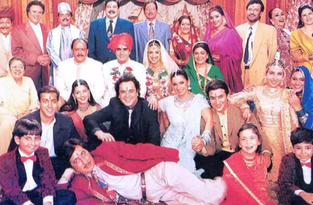 फिल्म ‘हम साथ साथ हैं’ के सेट पर फिल्म की पूरी स्टार कास्ट।