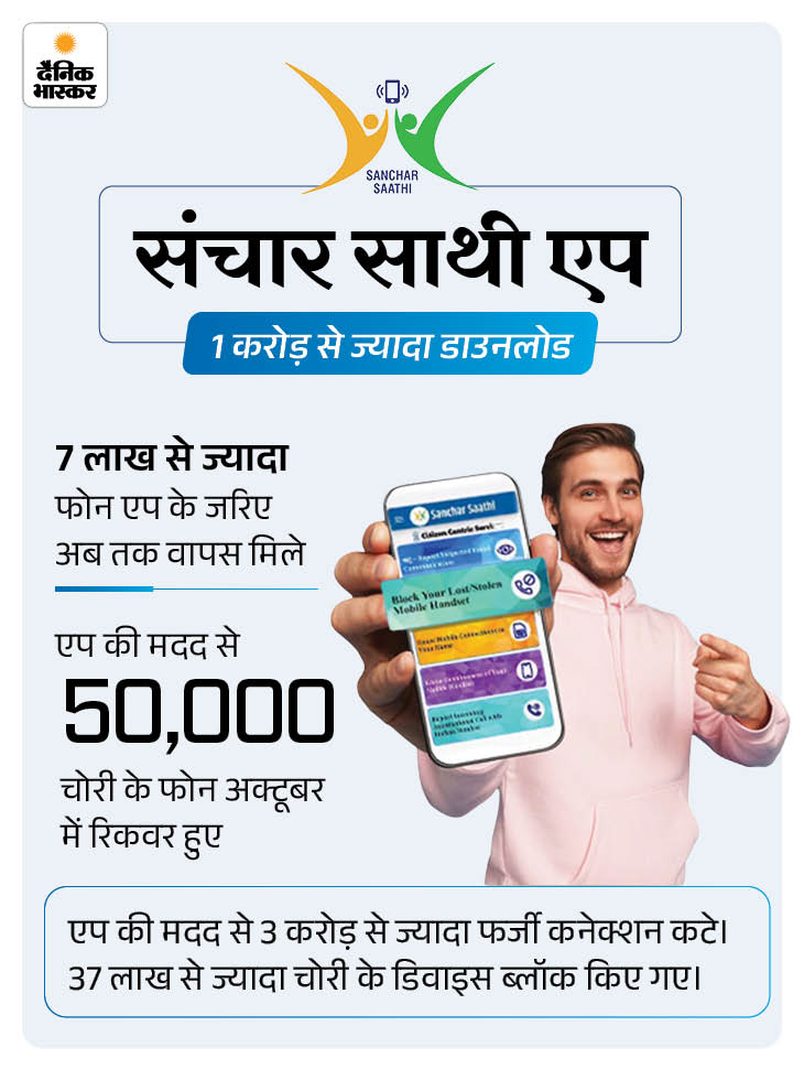 सरकार का कहना है कि एप चोरी या गुम फोन ट्रैक करने, ब्लॉक करने और उनका गलत इस्तेमाल रोकने के काम आएगा। यानी साइबर फ्रॉड रोकने में मदद मिलेगी। संचार साथी एप की मदद से अब तक 7 लाख से ज्यादा गुम या चोरी हुए मोबाइल वापस मिल चुके हैं।