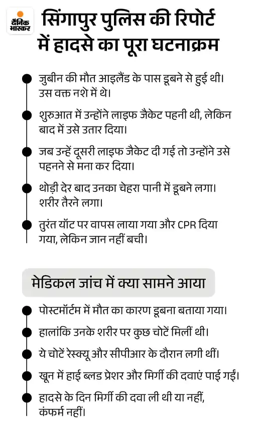 जुबीन अपने दोस्तों के साथ लाजरस आइलैंड के पास एक यॉट पर पार्टी कर रहे थे, तभी यह हादसा हुआ।
