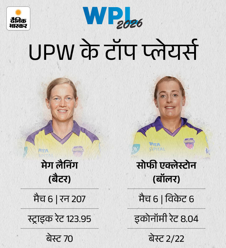 लिचफील्ड के बाहर होने के बाद मेग लैनिंग बल्लेबाजी में दूसरे नंबर पर हैं। उन्होंने 6 मुकाबलों में 207 रन बनाए हैं। वहीं, गेंदबाजी में सोफी एक्लेस्टोन ने 6 मैचों में 6 विकेट लेकर टीम की अगुवाई की है।