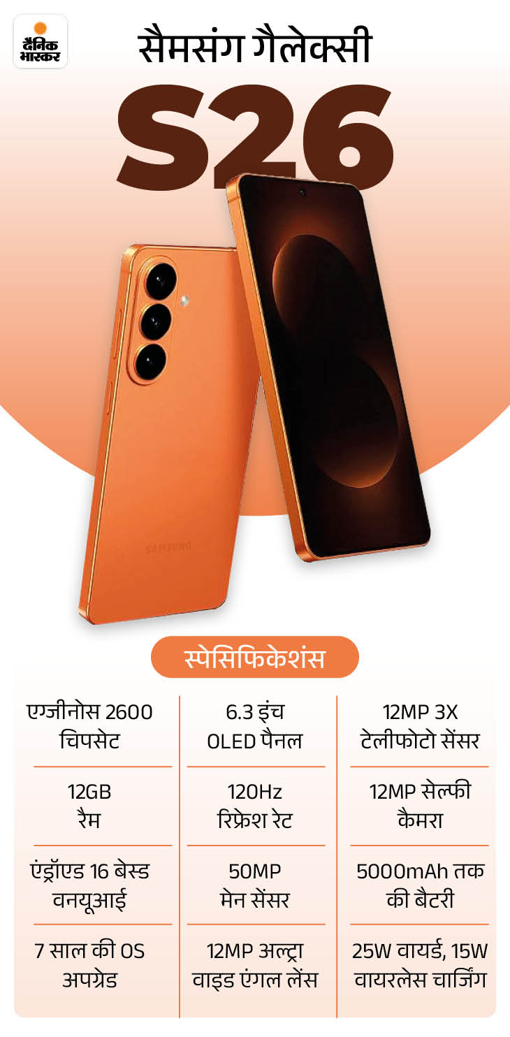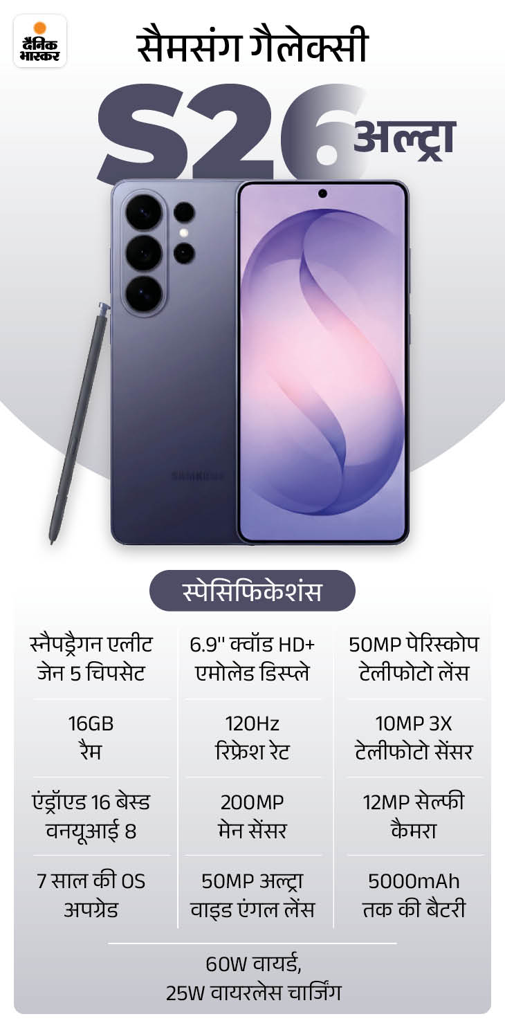वहीं, गैलेक्सी S26 प्लस ₹99,999 और सबसे प्रीमियम मॉडल गैलेक्सी S26 अल्ट्रा ₹1,29,000 की शुरुआती कीमत में आ सकते हैं। अल्ट्रा के 1TB वैरिएंट की कीमत ₹1.60 लाख तक जा सकती है।