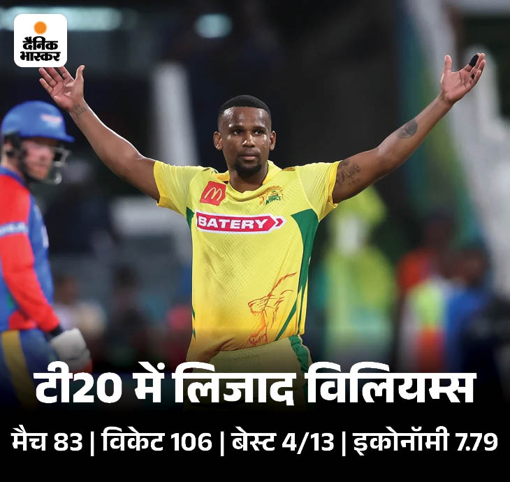 SA20 लीग में लिजाद विलियम्स चौथे टॉप विकेट टेकर थे। इसी साल फरवरी में हुई लीग में विलियम्स ने जोबर्ग सुपर किंग्स की ओर से खेलते हुए 9 मैच में कुल 15 विकेट लिए थे।