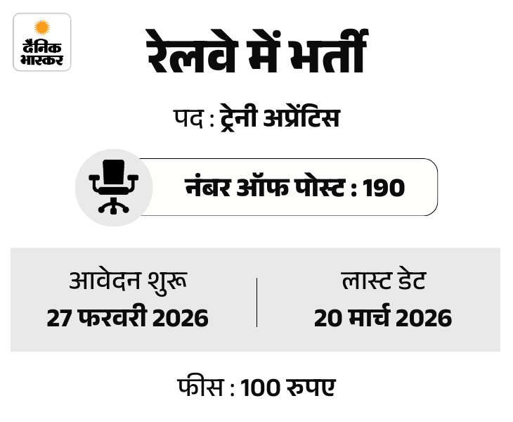 4. रेलवे में 190 पदों पर भर्ती, लास्ट डेट 20 मार्च