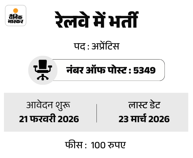 4. रेलवे में 5349 पदों पर भर्ती, लास्ट डेट 23 मार्च