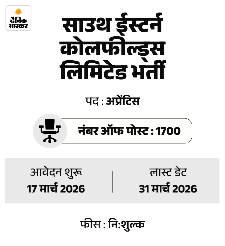 आज की सरकारी नौकरी में जानकारी साउथ ईस्टर्न कोलफील्ड्स में 1700 पदों पर भर्ती, SSB में सब इंस्पेक्टर की 51 वैकेंसी की। साथ ही झारखंड में डिप्टी कलेक्टर के 45 पदों पर भर्ती का नोटिफिकेशन जारी होने की।