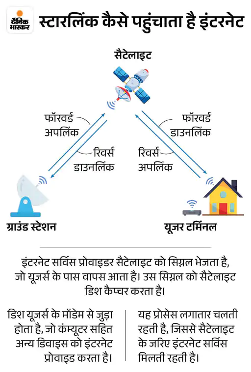 जवाब: स्टारलिंक, स्पेसएक्स का प्रोजेक्ट है, जो सैटेलाइट्स के जरिए हाई-स्पीड इंटरनेट देता है। इसके सैटेलाइट्स पृथ्वी के करीब घूमते हैं, जिससे इंटरनेट तेज और स्मूथ चलता है। ये खासकर उन इलाकों के लिए फायदेमंद है, जैसे गांव या पहाड़, जहां आम इंटरनेट नहीं पहुंचता।