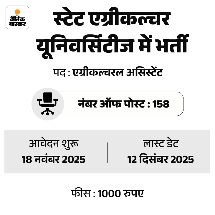गुजरात स्टेट एग्रीकल्चर यूनिवर्सिटीज में 158 पदों पर भर्ती निकली है। उम्मीदवार ऑफिशियल वेबसाइट aau.in पर जाकर आवेदन कर सकते हैं।