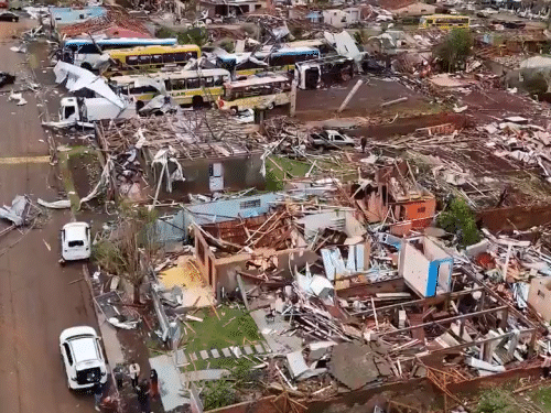सबसे ज्यादा नुकसान रियो बोनिटो डो इगुआकू शहर में हुआ। यहां आधे से अधिक घरों की छतें उड़ गई, कई इमारतें ढही, सड़कें बंद हो गई और बिजली की लाइनें टूट गईं।