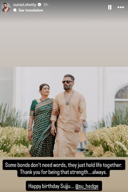 फोटो में सुनील शेट्टी अपनी बहन के साथ पैदल चलते हुए नजर आ रहे हैं। यह फोटो किसी पारिवारिक कार्यक्रम की लग रही हैतस्वीर के साथ सुनील ने लिखा, कुछ रिश्ते ऐसे होते हैं जिनके लिए ज्यादा शब्दों की जरूरत नहीं होती, क्योंकि वे खुद ही जिंदगी को संभाल लेते हैं।
