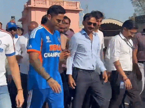 टी-20 वर्ल्ड कप जीत के बाद भारतीय कप्तान सूर्यकुमार यादव ट्रॉफी के साथ फोटोशूट के लिए सोमवार को गुजरात के गांधीनगर में स्थित ऐतिहासिक स्थल अडालज नी वाव पहुंचे। टीम इंडिया लगातार दूसरी और ओवरऑल तीसरी बार टी-20 वर्ल्ड चैंपियन बन गई है।