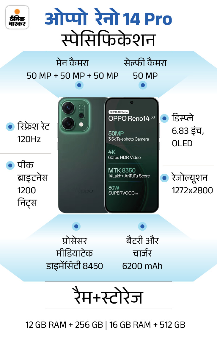 3. ओप्पो रेनो 14 Pro: 50MP फ्रंट कैमरा और 80W फास्ट चार्जिंग
