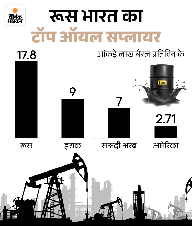 फरवरी 2022 में रूस-यूक्रेन युद्ध शुरू होने के बाद यूरोप ने रूसी तेल पर प्रतिबंध लगा दिया। इसके बाद रूस ने अपने तेल को एशिया की ओर मोड़ा। मीडिया रिपोर्ट्स के मुताबिक भारत ने 2021 में रूसी तेल का सिर्फ 0.2% आयात किया था।