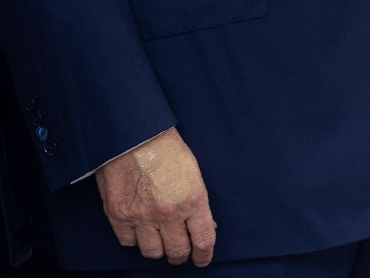 ट्रम्प के हाथ पर चोट के निशान दिखें थे