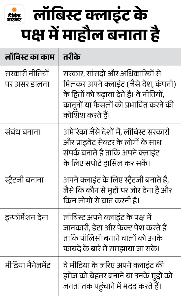 आसान शब्दों में कहें तो लॉबिस्ट सरकार और प्राइवेट कंपनियों के बीच का पुल है, जो अपने क्लाइंट का फायदा चाहता है।