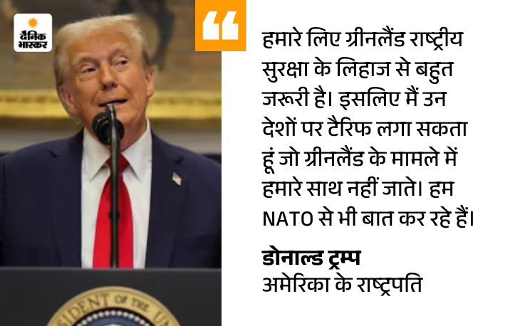 ट्रम्प ने बताया कि अमेरिका ग्रीनलैंड को लेकर NATO से भी बातचीत कर रहा है। ट्रम्प पहले भी कह चुके हैं कि NATO को अमेरिका का साथ देना चाहिए। अगर अमेरिका ने ग्रीनलैंड पर कंट्रोल नहीं किया, तो रूस या चीन वहां अपना असर बढ़ा सकते हैं, जो किसी भी हालत में स्वीकार नहीं किया जाएगा।