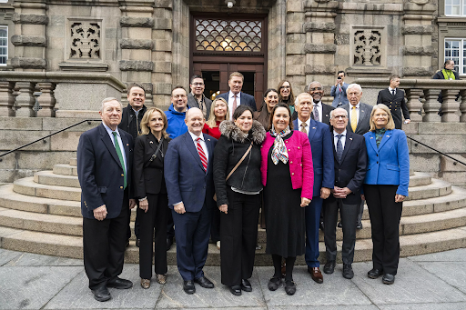 अमेरिकी कांग्रेस का प्रतिनिधिमंडल 16 जनवरी को डेनमार्क कोपेनहेगन स्थित संसद में पहुंचा। बाएं से दाएं (सामने): सीनेटर डिक डरबिन, मैडलीन डीन, सीनेटर क्रिस कून्स और आजा चेम्निट्ज, सीनेटर थॉम टिलिस, सीनेटर पीटर वेल्च और सीनेटर लिसा मुर्कोव्स्की।