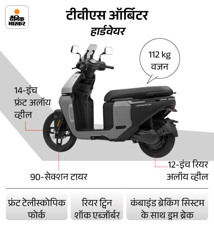 मोटर को पावर देने के लिए ऑर्बिटर में 3.1kWh का बैटरी पैक दिया गया है, जो IP67 रेटेड है। यानी पानी और धूल से पूरी तरह सुरक्षित है। फुल चार्ज पर IDC (भारतीय ड्राइविंग कंडीशन) रेंज 158km बताई गई है। इसकी रेंज आईक्यूब के 2.2kWh वाले बेस वैरिएंट की रेंज (94km) से 64km ज्यादा है। वहीं, आईक्यूब की टॉप स्पीड 75kmph है।