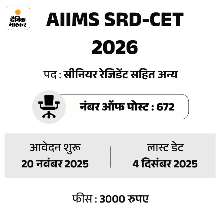 3. AIIMS SRD-CET 2026 के लिए आवेदन शुरू