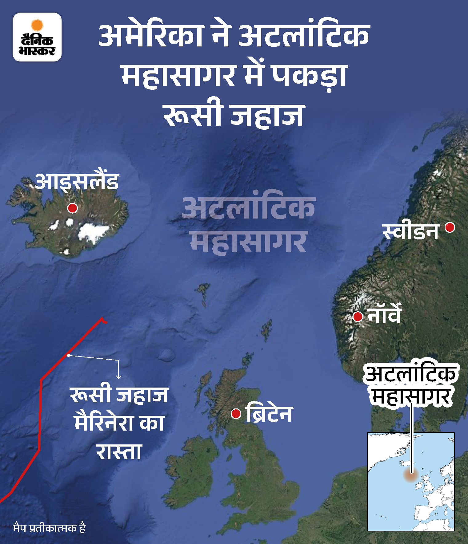 अमेरिका ने 7 जनवरी को रूसी झंडे वाले जहाज 'मैरिनेरा' को कब्जे में लिया था। - Dainik Bhaskar