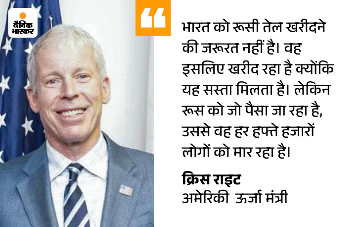 अमेरिका के ऊर्जा मंत्री क्रिस राइट ने भारत से अपील की है कि वह रूस से कच्चे तेल का आयात करने पर दोबारा सोचे। न्यूयॉर्क में प्रेस कॉन्फ्रेंस के दौरान राइट ने कहा,