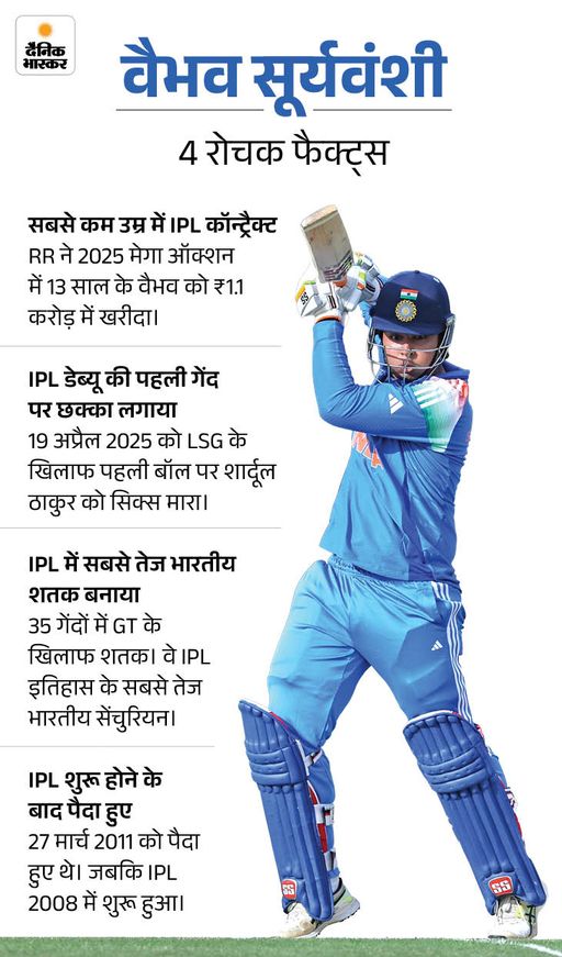 वैभव सूर्यवंशी को 14 साल की उम्र में कप्तानी मिली है। उनसे जुड़े अन्य रोचक फैक्ट भी जानिए…