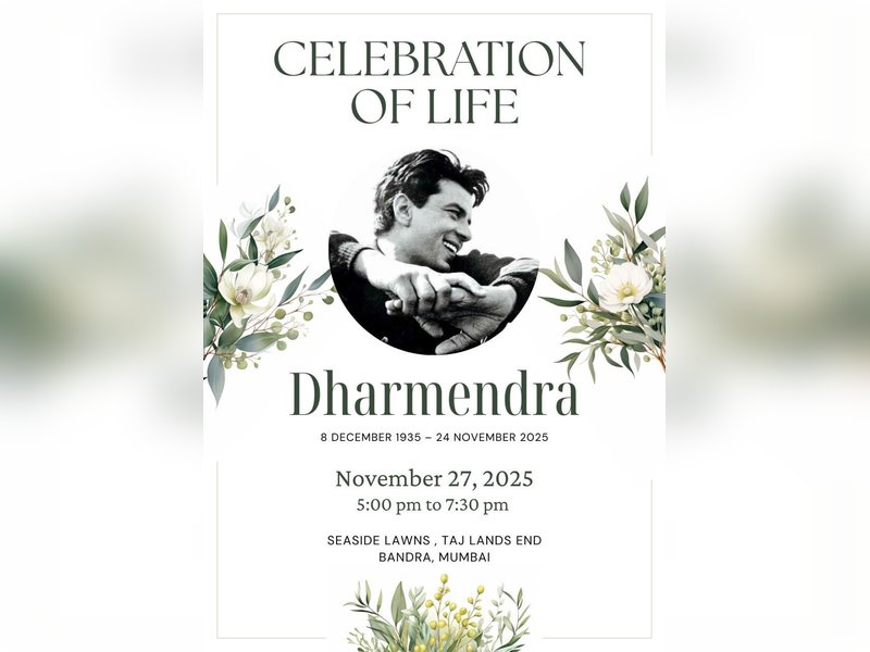 वेटरन एक्टर धर्मेंद्र का 24 नवंबर को निधन हो गया था। आज मुंबई के बांद्रा स्थित ताज लैंड्स एंड होटल में उनकी याद में प्रेयर मीट आयोजित की गई। इस प्रार्थना सभा का नाम ‘सेलिब्रेशन ऑफ लाइफ’ रखा गया है।