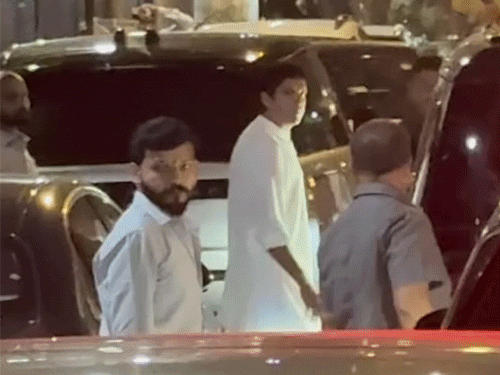 ऋतिक रोशन पिता राकेश रोशन के साथ धर्मेंद्र के निधन पर मंगलवार को शोक संवेदना जताने उनके घर पहुंचे।