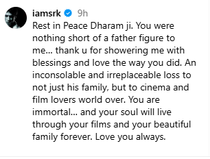 शाहरुख खान ने इंस्टाग्राम पर लिखा –