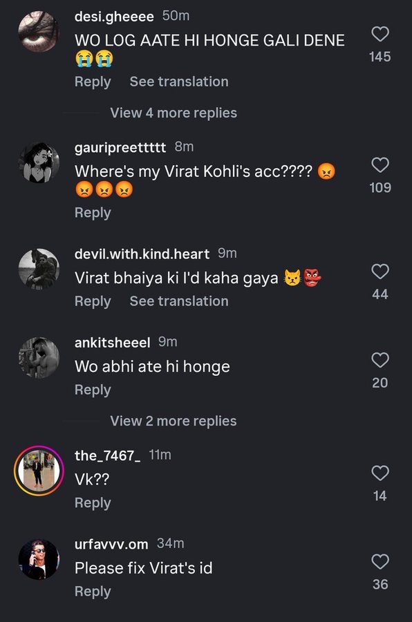 जब फैंस ने विराच कोहली के इंस्टा अकाउंट को एक्सेस करने की कोशिश की, तो उन्हें प्रोफाइल नहीं मिली। इसके बाद कई यूजर्स के इसपर रिएक्शन भी आए।