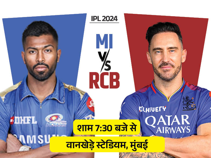 इंडियन प्रीमियर लीग (RCB) 2024 में आज मुंबई इंडियंस (MI) का सामना रॉयल चैलेंजर्स बेंगलुरु (RCB) से होगा। 17वें सीजन का 25वां मुकाबला मुंबई के वानखेड़े स्टेडियम में शाम 7:30 बजे से शुरू होगा। इस मुकाबले का टॉस 7:00 बजे होगा।