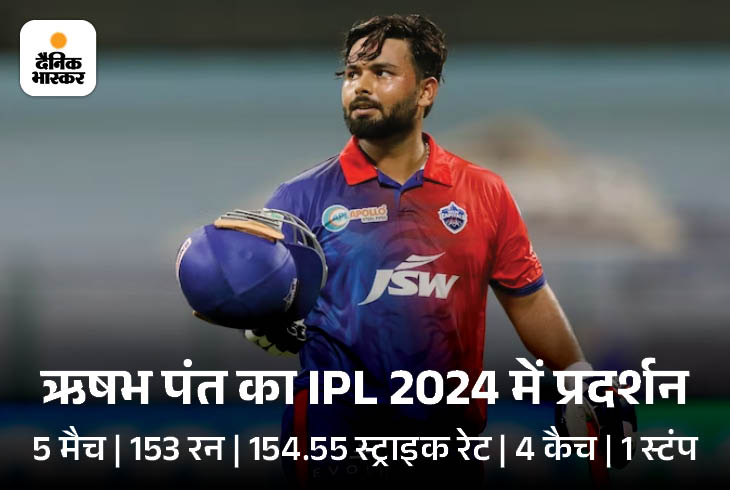 पंत ने अब टूर्नामेंट के 5 ही मैचों में विकेट के पीछे 4 कैच लिए और एक स्टंपिंग की। इसके साथ ही उन्होंने 154.54 की स्ट्राइक रेट से 153 रन भी बनाए। इनमें 2 फिफ्टी शामिल हैं।